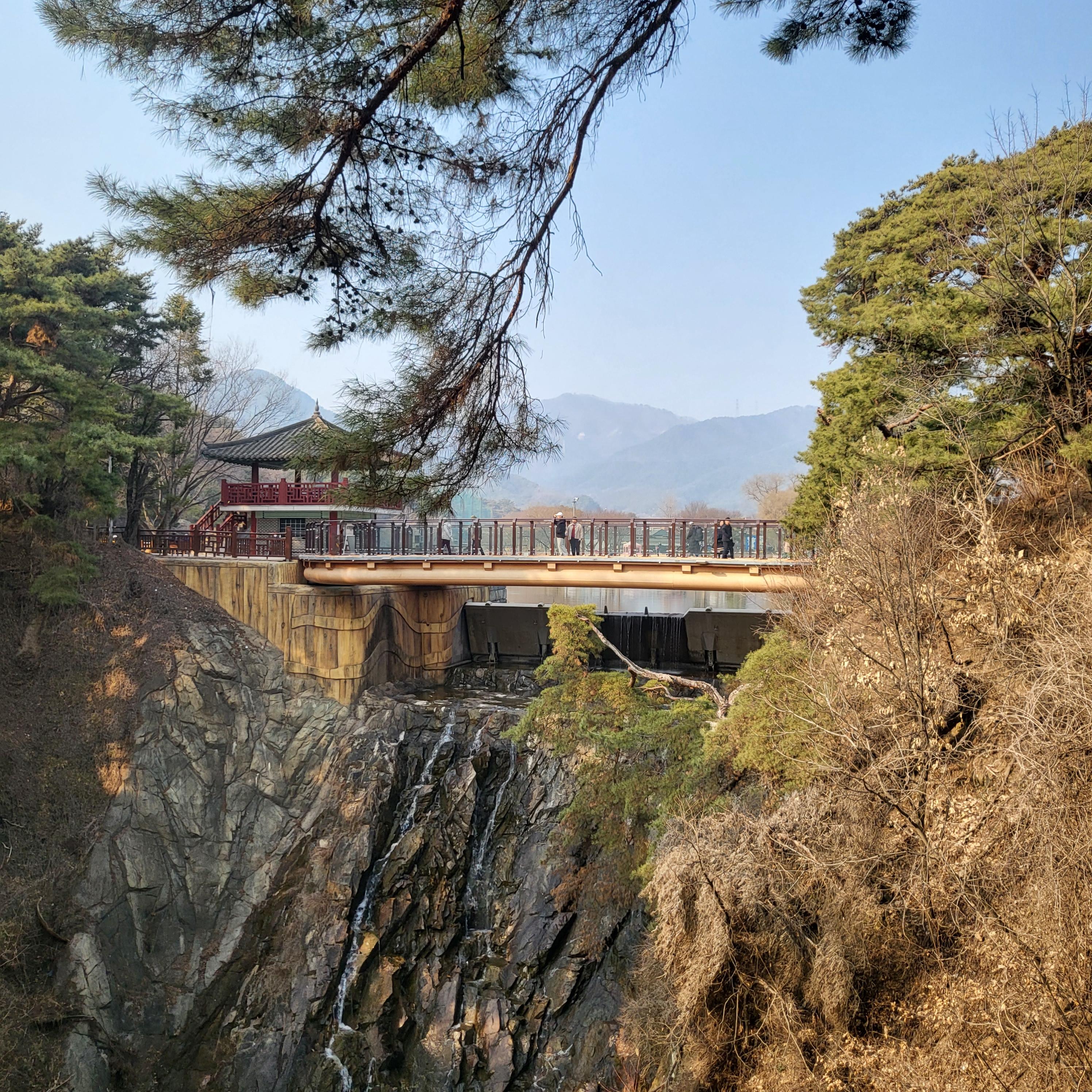 또한, 용추 폭포 위로 유리 전망대가 있어 아찔하게 뾰족한 바위들을 보면서 스릴을 느낄 수도 있더라고요.